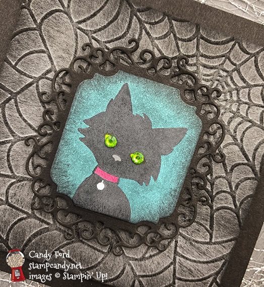 I sponged black ink very lightly all over this embossed layer, which really made the cobwebs show up.