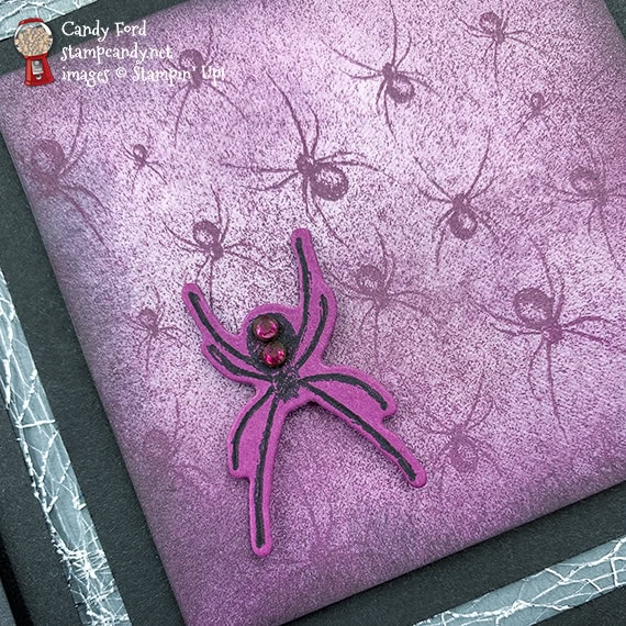 Blackberry Bliss rhinestones applied onto the spider (to approximate an hourglass, like a black widow spider) using my Take Your Pick tool