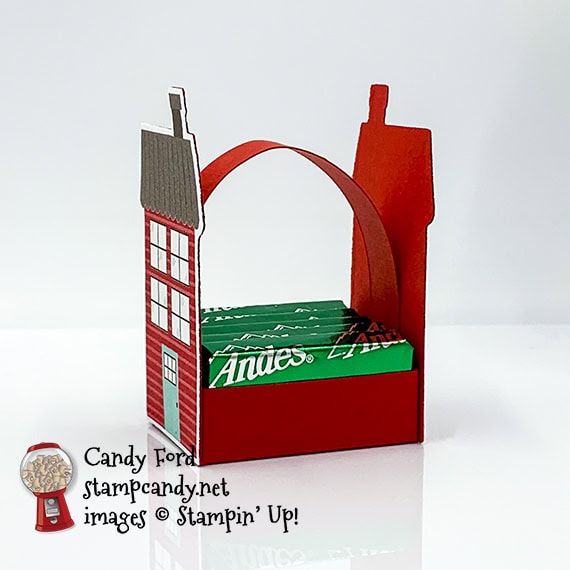 Today I’m sharing a Treat Holder that holds 5 Andes Mints. This is one of the projects we made this weekend at our Candy Hearts team meeting. I was inspired by the little treat holders on page 26 of the August – December 2020 Mini Catalog.