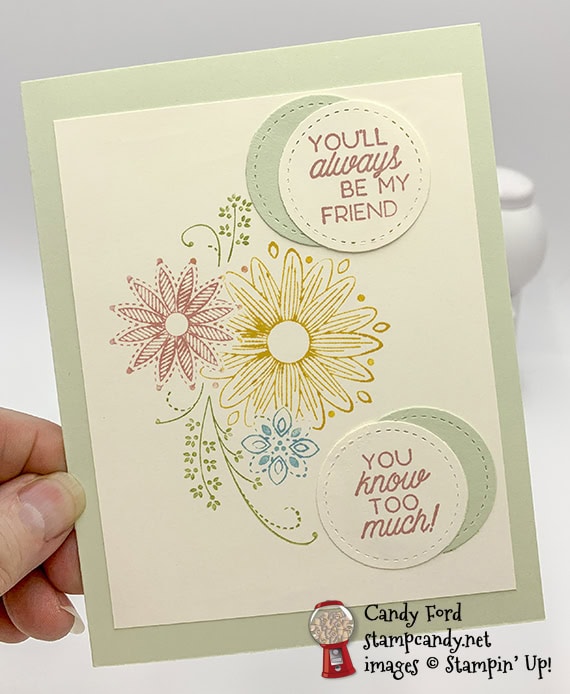- die cut sentiment and Soft Sea Foam circle glued onto the Very Vanilla CS layer