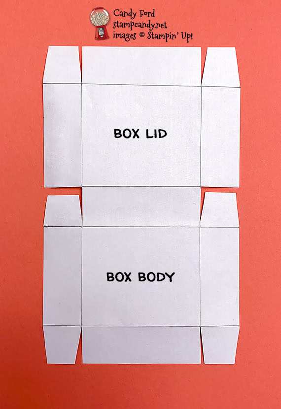 - sentiment glued onto the lid (I placed the sentiment wherever I thought it looked best on each box, according to the paper pattern.)
