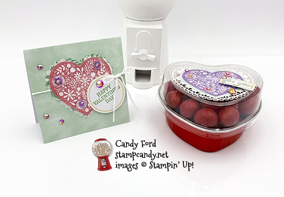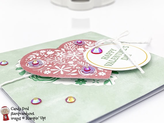 - small sentiment adhered onto the Highland Heather heart using Stampin’ Dimensionals