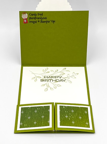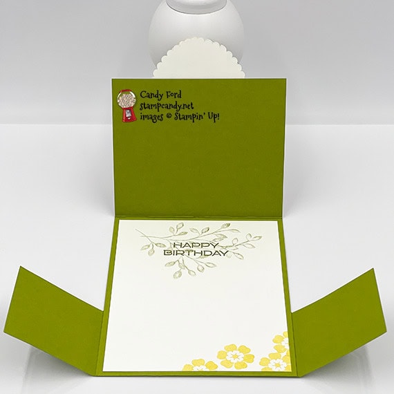 - the Old Olive CS piece adhered onto the card front (oval and top flap) using Stampin’ Dimensionals