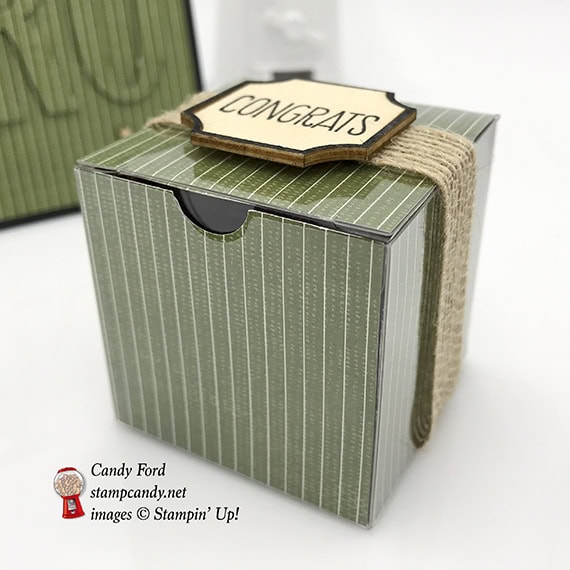 sentiment adhered onto the front of the box, over the ribbon, using Stampin’ Dimensionals