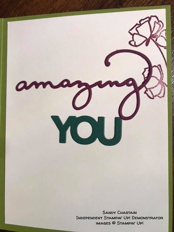 - sentiment adhered to the Whisper White CS layer using Stampin’ Dimensionals