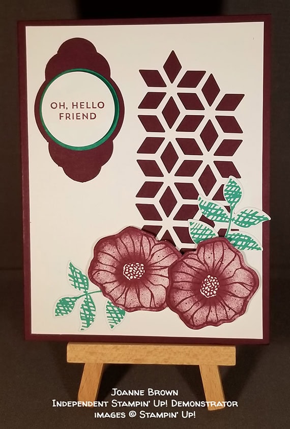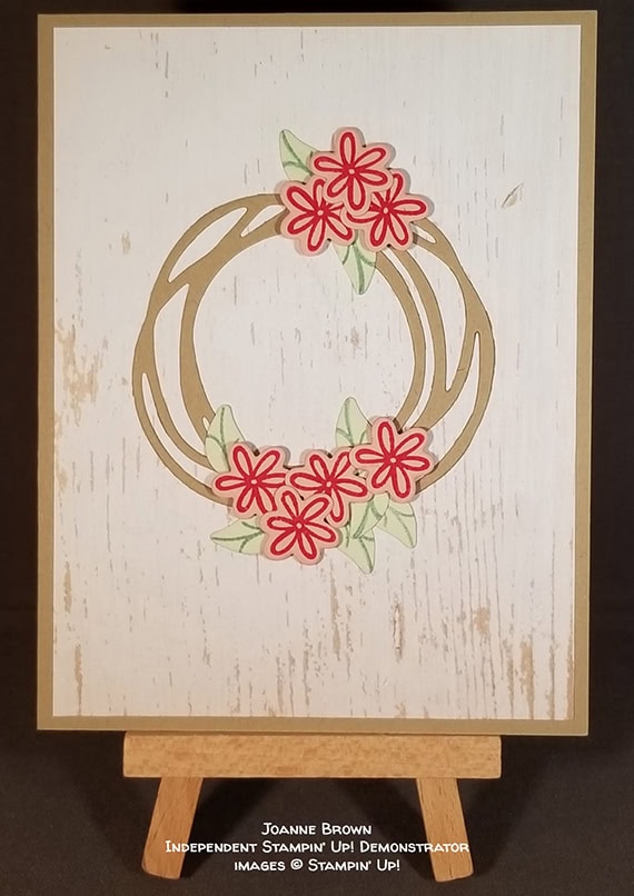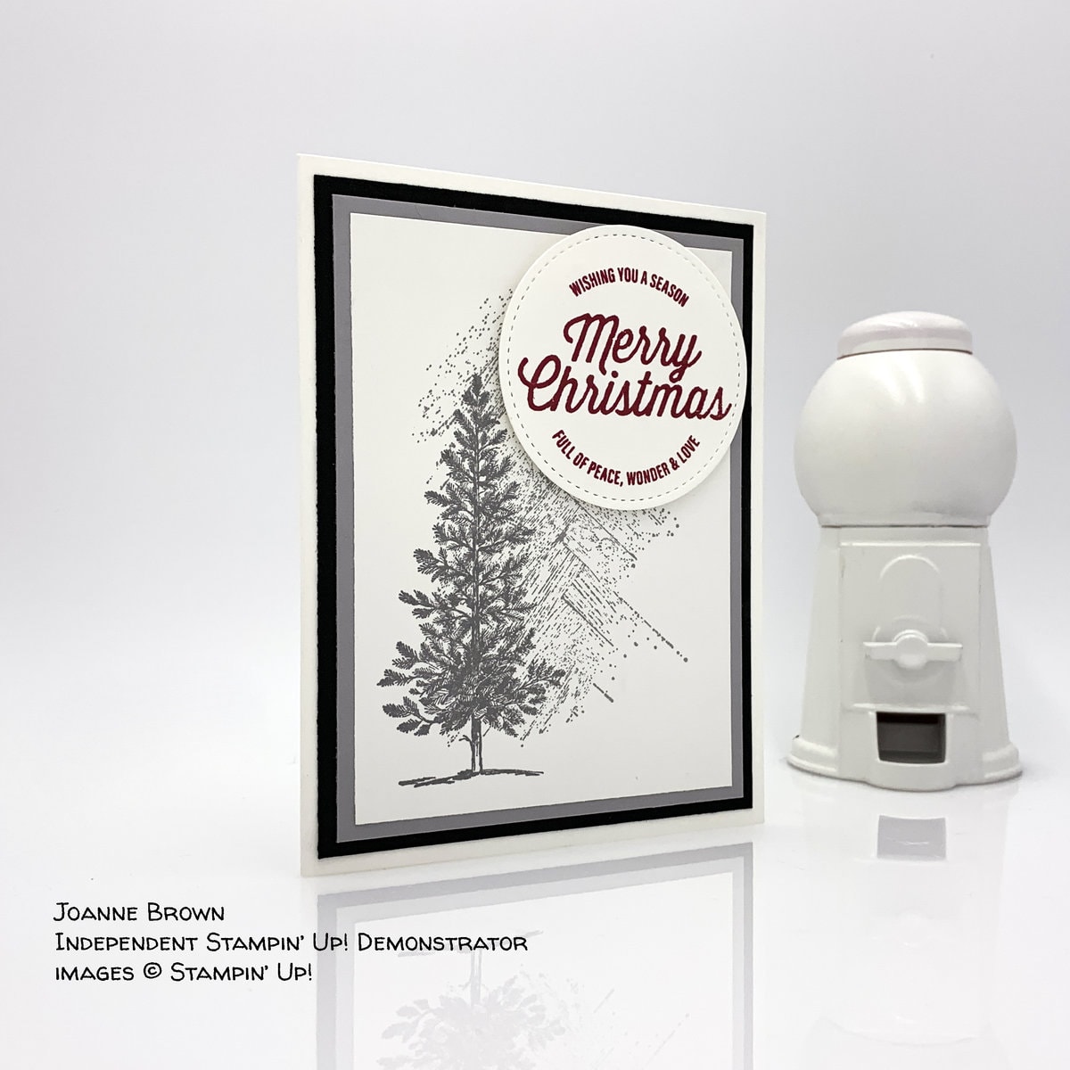 Joanne Brown is one of my amazing Candy Hearts team members. She made today’s card using three stamp sets (Gallery Grunge, Lovely as a Tree, and Farmhouse Christmas) and1 the Stitched Shapes Framelits Dies. I love how she combined all these different products in a way that makes you think they’re all from the same set!