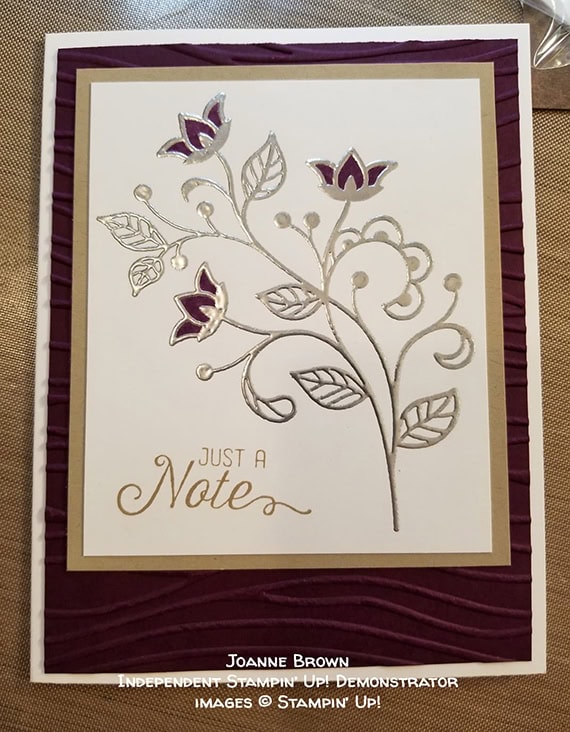 - wood background image in Basic Gray ink (stamped off once) onto the Whisper White CS layer