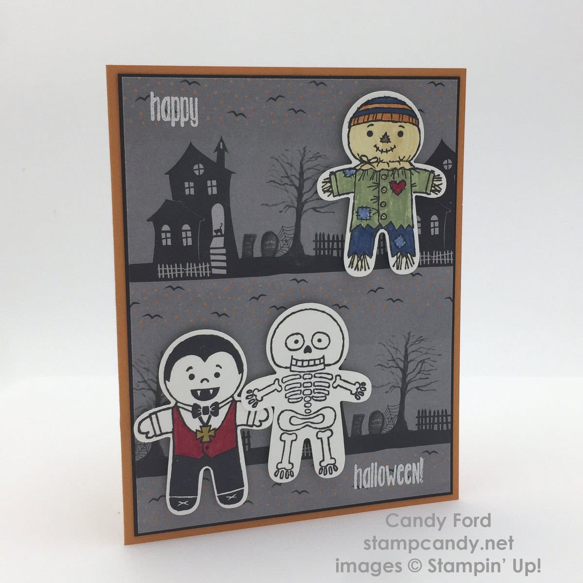 This is another card I’ve made with the Cookie Cutter Builder Punch. The Cookie Cutter Halloween stamp set is so stinkin’ cute! I love that Stampin’ Up! has given us two stamp sets to go with the punch. The other one, Cookie Cutter Christmas, is available in a bundle with the punch to save 10%!