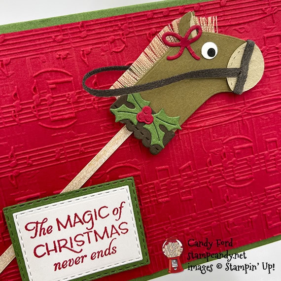 Welcome to the Candy Hearts Blog Hop for November! Today we are sharing Holiday projects. I used the Stockings Dies to make a hobby horse. I remember having one of these when I was very little. It had jingle bells on it. I usually played with it outside, because inside I had my rocking horse. It was on a metal stand with springs, so it didn’t rock so much as it bounced. I would get going so fast that it would scoot across the room. After reading my post, I hope you will hop to the next person on the list below. Be sure to hop around to see ALL the great projects the Candy Hearts have created for you!