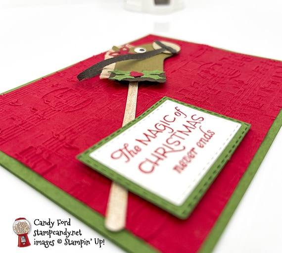 - Garden Green CS mat adhered onto the Real Red CS layer using Black Stampin’ Dimensionals