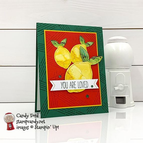 - sentiment adhered over the lemon using Stampin’ Dimensionals at each end
