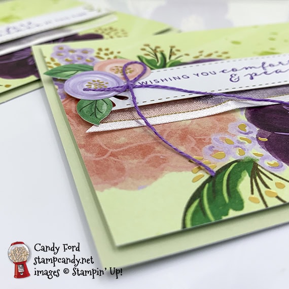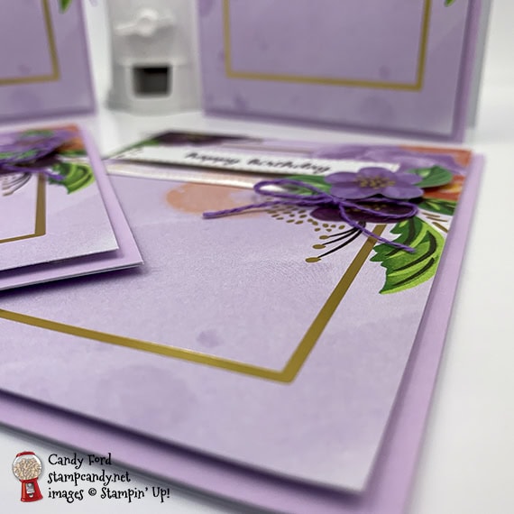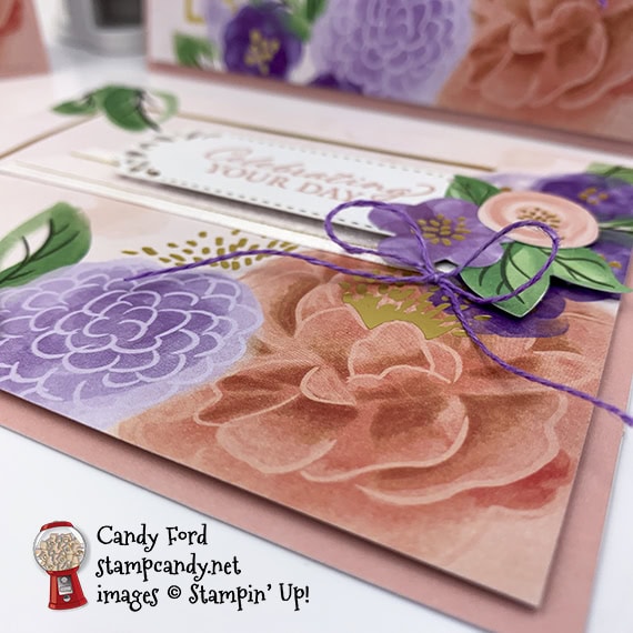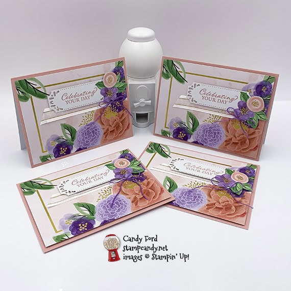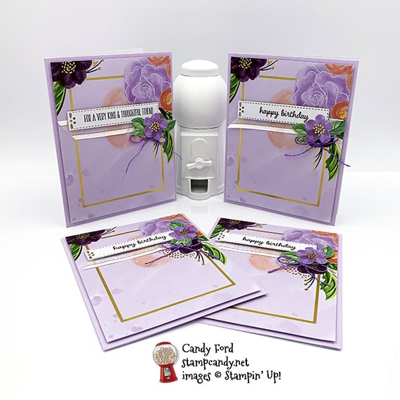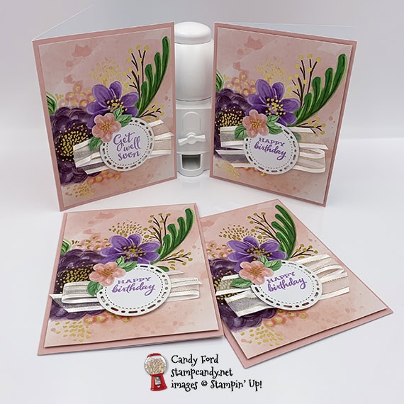 I used the Four Season Floral stamp set to stamp the happy birthday sentiments in Highland Heather ink.