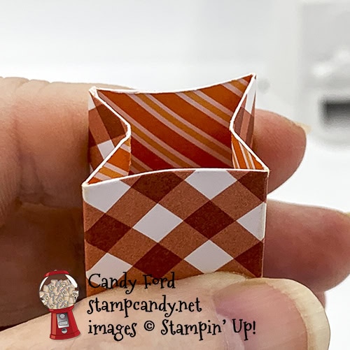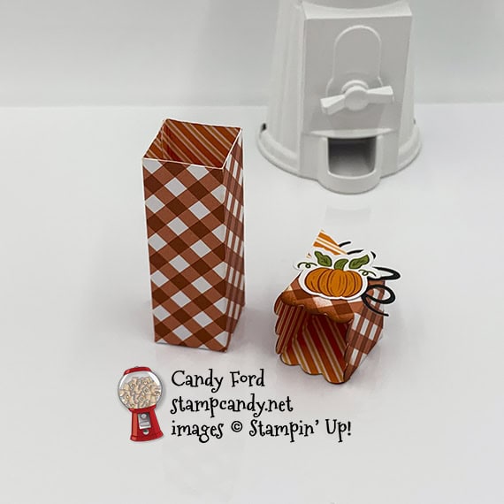 Welcome to the September 2020 APPT Blog Hop! This month’s kit is called Hello Pumpkin, and it makes the most adorable little treat holders. I used the pieces fro the kit to make a card and a little treat box. My treat box is 4 sided, which is different from the 5 sided one designed by Stampin’ Up! for the kit. I started by popping out all the die cut pieces from their sheets, including all the diamond shapes from the treat holders, saving everything. I used Black Stampin’ Dimensionals and Multipurpose Liquid Glue, but you can certainly use the Dimensionals and Glue Dots that came in the kit.