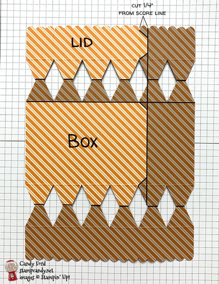 - NOTE: I stamped the box after I had scored and cut it. I think it would be easier to stamp on the card stock before doing that.