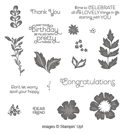 - Everything Is Rosy Photopolymer Stamp Set—18 stamps; suggested blocks: a, b, c,