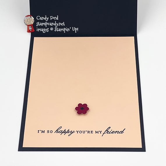 - tiny die cut flower adhered just above the sentiment using a Stampin’ Dimensional