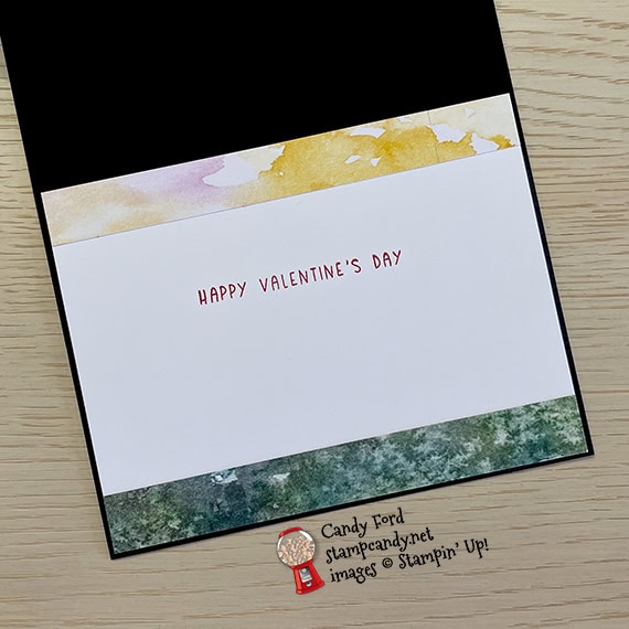 - sentiment in Tuxedo Black Memento ink onto the Petal Pink CS for the inside