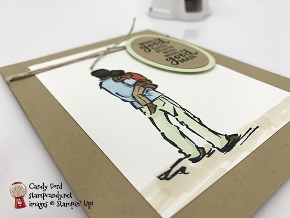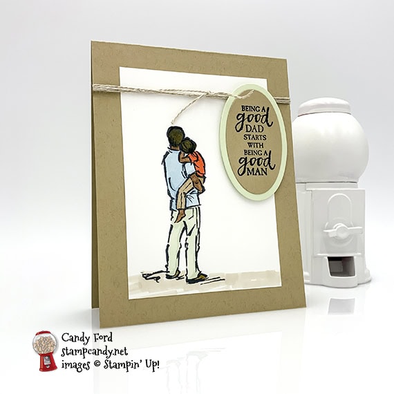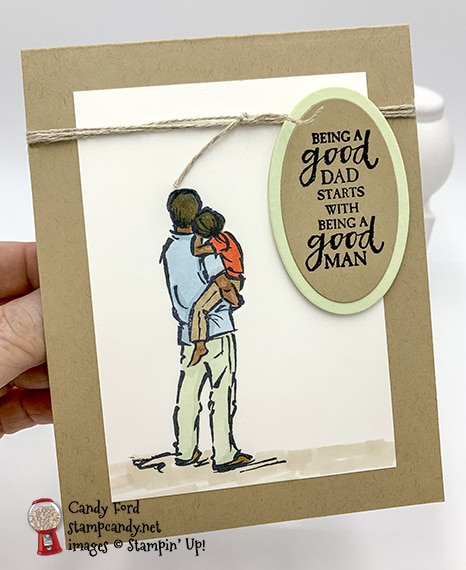 I made today’s card using the new A Good Man stamp set from the upcoming 2019-2020 Annual Catalog. It contains images of men and great sentiments. I colored the image I used today using Stampin’ Blends Markers.