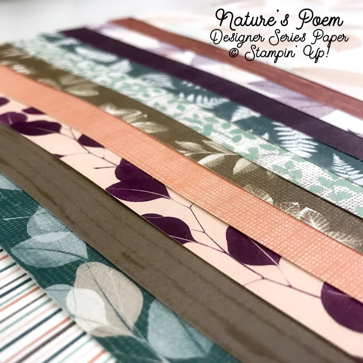 Nature’s Poem Designer Series paper (DSP) cut to 3-1/2″ x 3/4″ – stripes