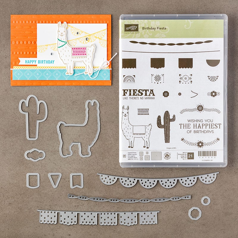When I first saw the Birthday Fiesta stamp set, I thought the llama was cute, but I wasn’t sure how much I would actually use it. But I was focusing on the llama and not on the rest of the great images in this set. And most of those images have a coordinating die in the Fiesta Time Framelits. (The stamp set and the die set are available as a bundle to save 10%!)