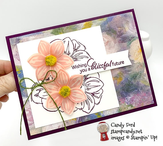- large flower in Blackberry Bliss ink three times onto the Whisper White CS layer
