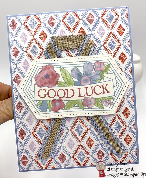 - die cut label adhered over the ribbon using Stampin’ Dimensionals