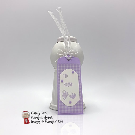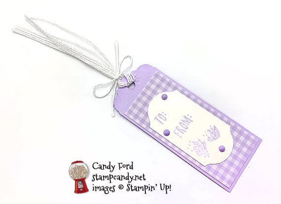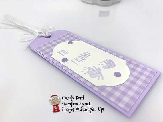 Today I’m sharing a sweet little tag made using the new Delightful Day bundle (Delightful Day stamp set and Delightful Tag Topper Punch) and Timeless Label Punch. It’s made up of Purple Posy card stock and ink, Purple Posy Designer Series Paper, Purple Posy Faceted Dots, and Whisper White Flax Ribbon. Wouldn’t you love to receive something with this little beauty attached?