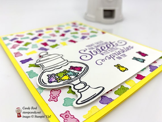 - die cut candy jar glued onto the left edge of the Whisper White CS layer