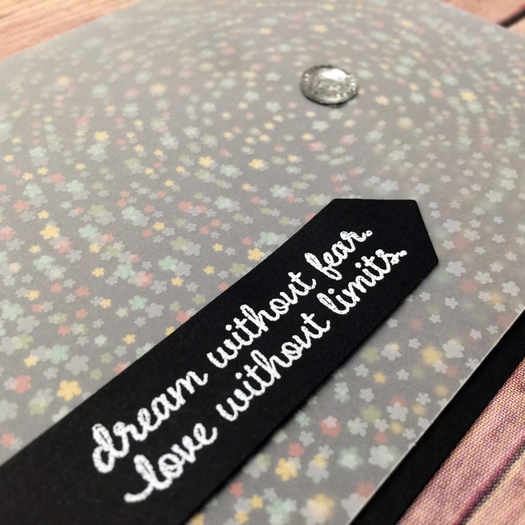 The sentiment, from the Picture Perfect stamp set, seemed perfectly “cosmic” for this particular background. I heat embossed it in white on the Basic Black banner.