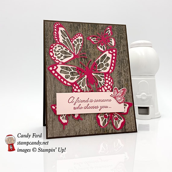 Here’s another sneak peek of new products from the 2019 Occasions catalog, which goes live in only 5 days! I used the Beauty Abound stamp set and Butterfly Beauty Thinlits Dies (get the bundle to save 10%) along with the Wood Textures Designer Series Paper to create this lovely friend card.