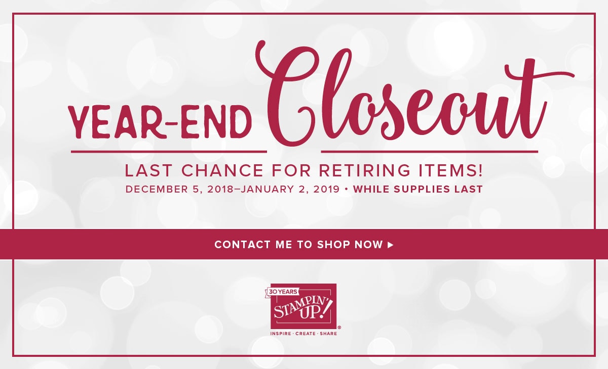 During the Year-End Closeout promotion, you can save on a selection of retiring and surplus items—while supplies last. Definitely place your orders sooner rather than later, because supplies are limited and the Year-End Closeout ends on January 2. After that, some of your favorite retiring items may be gone for good!