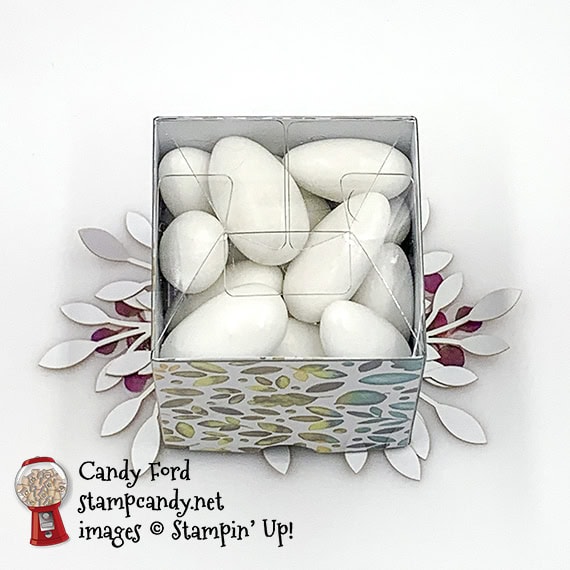 Whisper White CS layer adhered onto the top of the box using Stampin’ Dimensionals