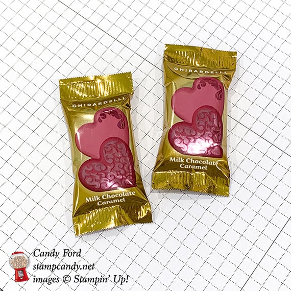 It’s time for the APPT Blog Hop for the January 2019 Be Mine Paper Pumpkin kit! I have really enjoyed playing with this month’s kit. First, it’s adorable and fun. Second, it comes with a lot of extra pieces. Third, since it coordinates with the Animal Expedition suite from the Annual catalog, you can do lots and lots of different things with it. And fourth, I love puns – “you’re one in a chameleon.” For today’s projects I made a mini card that can be tucked into a 3″ x 3″ envelope or tied onto a gift, and a Ghirardelli treat wrapper. (Target has lots of cute Valentine’s versions of lots of your favorite candies.)