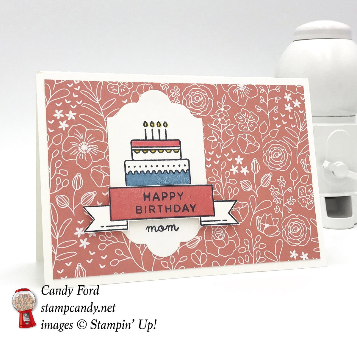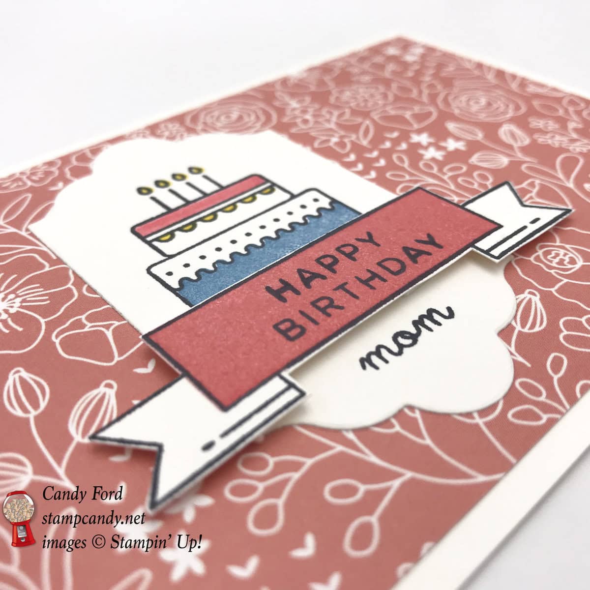 - Mom in Memento black ink below the cake, leaving room for the banner