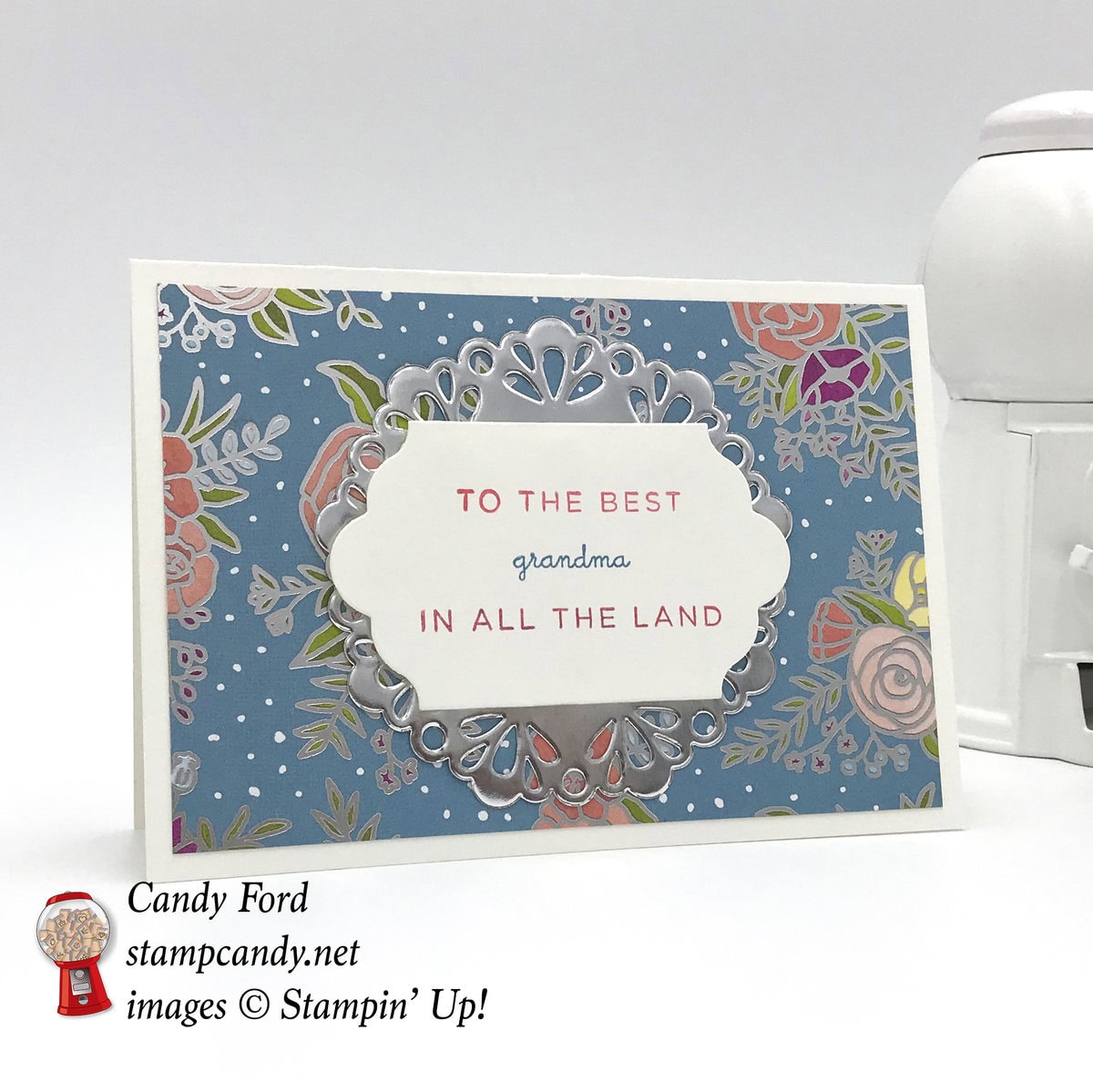 The Lots of Labels Framelits Dies are already sold out (see the chart near the bottom of this post) but you can use the Layering Ovals Framelits Dies to recreate today’s card.