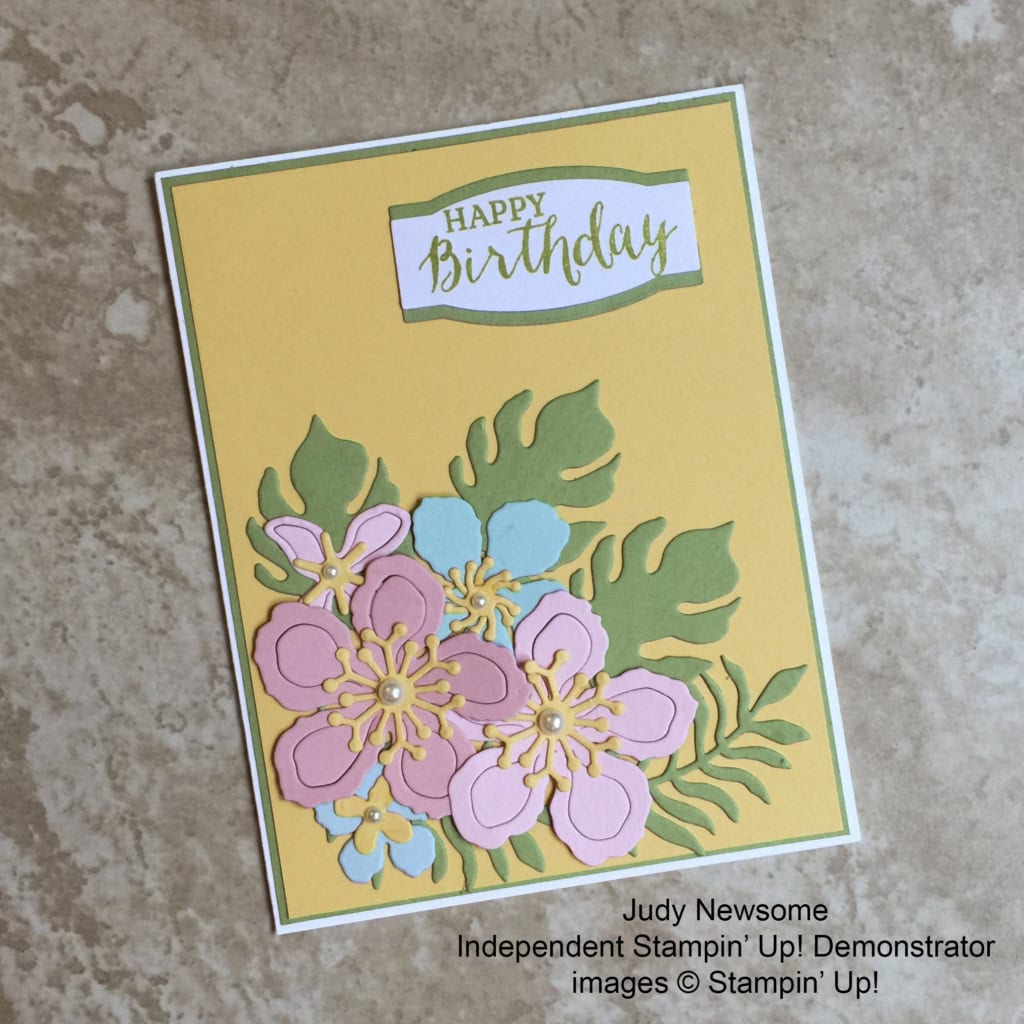 I had a wonderful time in Savannah last weekend at Stampin’ Up!’s OnStage event, but evidently I contracted the plague while I was there. Okay, it’s just the flu, but it still really stinks. Since I have no energy to get in my studio and create, I thought I’d share some cards from the past that I made using products that are retiring. Sort of a last hurrah, so to speak. Each of these projects uses at least one retiring item. It could be the paper, a retiring In Color, or stamp set. Or it could be that, in my flu medicine induced stupor, I accidentally included something that I shouldn’t have. So, you know, just enjoy looking at it anyway.