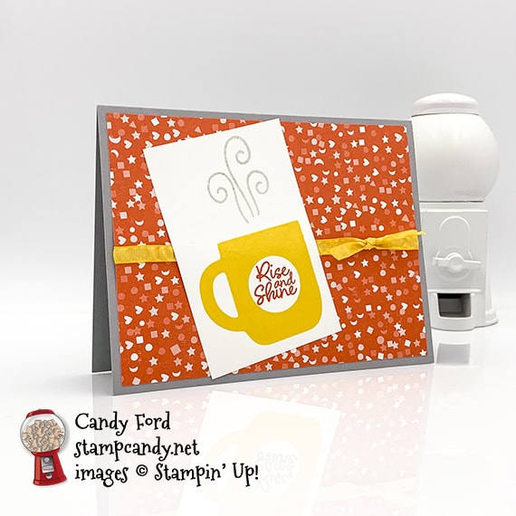 I made today’s card using the Rise & Shine stamp set (one of the new 2nd release Sale-A-Bration items,) Follow Your Art Designer Series Paper, and Daffodil Delight 1/4″ Ruched Ribbon. Be sure to check out all the newest Sale-A-Bration items. You can see them at the bottom of this post.