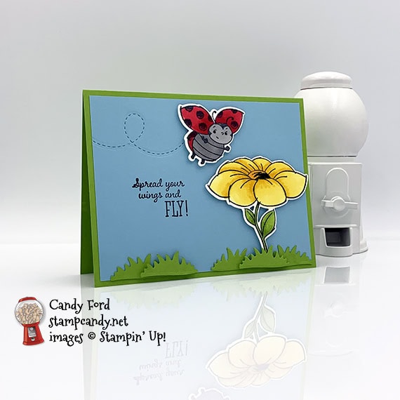 Today I’m sharing a card I made using the Little Ladybug host stamp set and the coordinating Ladybug Dies. I had fun coloring the sweet little ladybug and the big flower using Stampin’ Blends Markers. And check out the bee’s route cut into the card stock layer using a die – so cute!