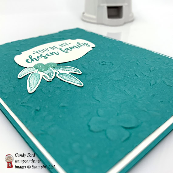 - sentiment glued onto the embossed layer, over the leaf stems