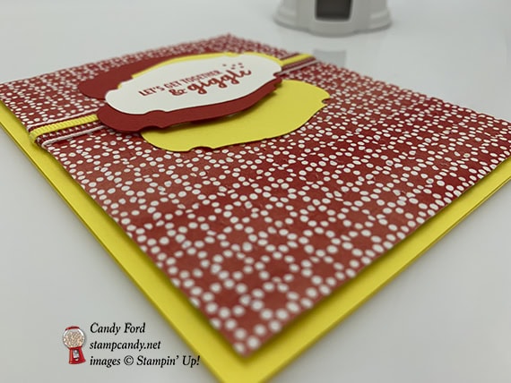 - DSP layer adhered onto the front of the card base with Stampin’ Dimensionals