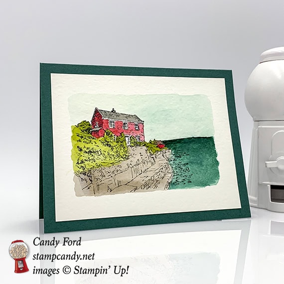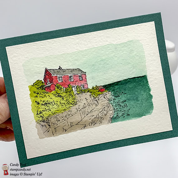 Today’s card is very very simple. One stamp, three pieces of paper, an Aqua Painter, and some ink refills. That’s all it is. The By the Bay Sale-a-bration stamp set really does all the work for you.