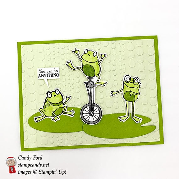 - frog on unicycle adhered over the top using Stampin’ Dimensionals