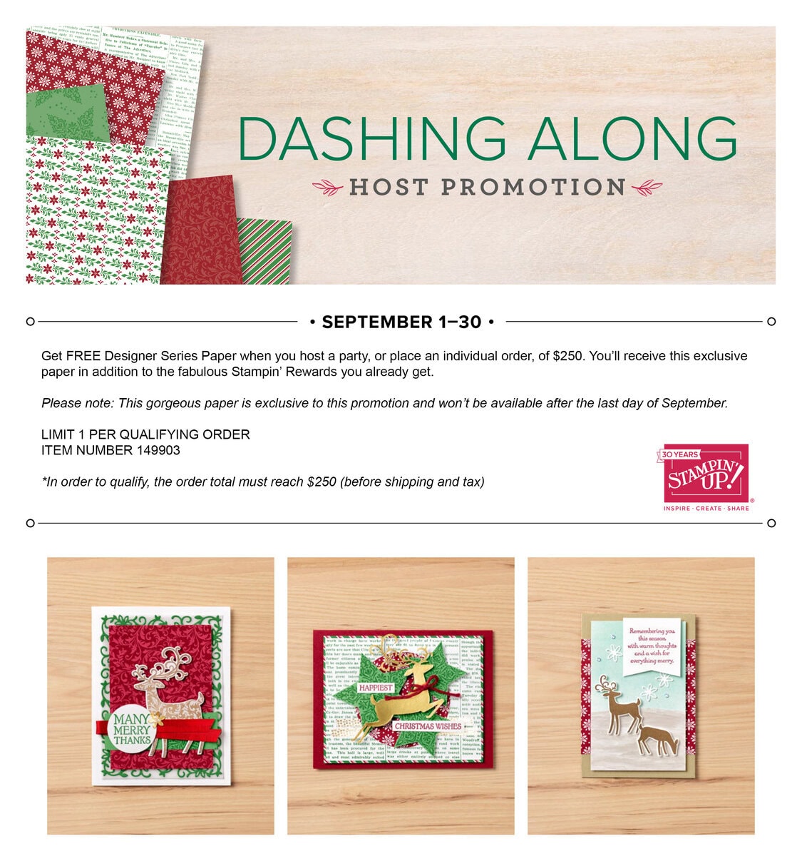 - Dashing Along Designer Series Paper is exclusive to this promotion and will not be available after September 30.