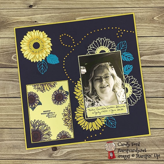 Welcome to the Scrapbooking Global June 2020 Blog Hop! This month we’re featuring new products from the new 2020-2021 Annual Catalog. I used the new Celebrate Sunflowers bundle (Celebrate Sunflowers stamp set & Sunflowers Dies) as well as a few of the new 2020-2022 In Colors (Bumblebee, Cinnamon Cider, and Just Jade.) I used Press n Seal plastic wrap to keep all the little pieces of the die cuts in the right place. I’ve used this technique several times in the last couple weeks. I printed the photo in sepia so it would match the yellow/brown feel of the page.
