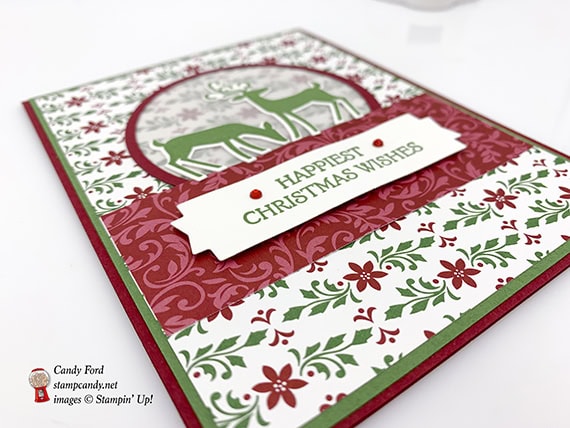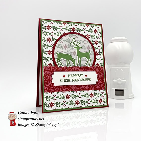 Today I’m sharing the card I made for the Candy Hearts card swap for November. I used the Dashing Deer Bundle and Dashing Along Designer Series Paper to create this card with multiple layers. I cut some of the pieces using the Layering Circles Framelits Dies and the Lakeside Framelits Dies.