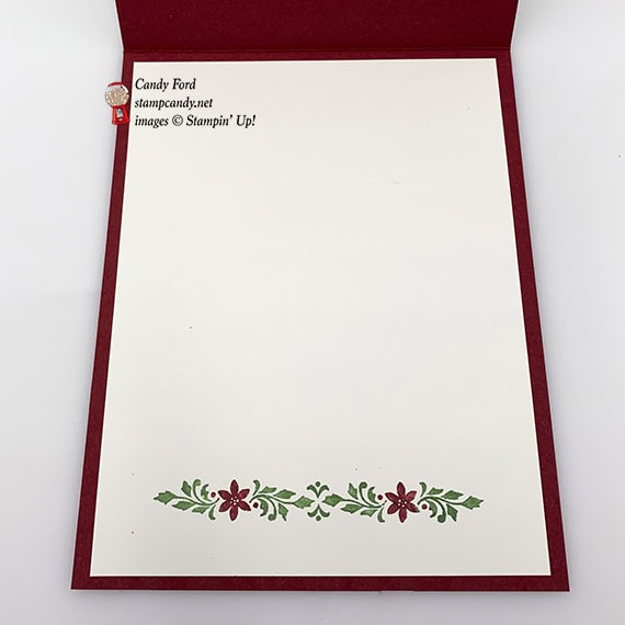 - Whisper White CS cut to 5-1/4″ x 4″ for the inside of the card base (I accidentally used a piece cut to 5-3/8″x 4-1/8″)