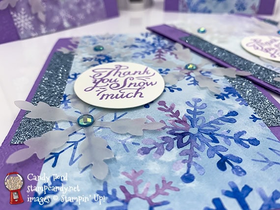 - a blue gem applied onto the center of each snowflake using the pointy end of my Take Your Pick tool