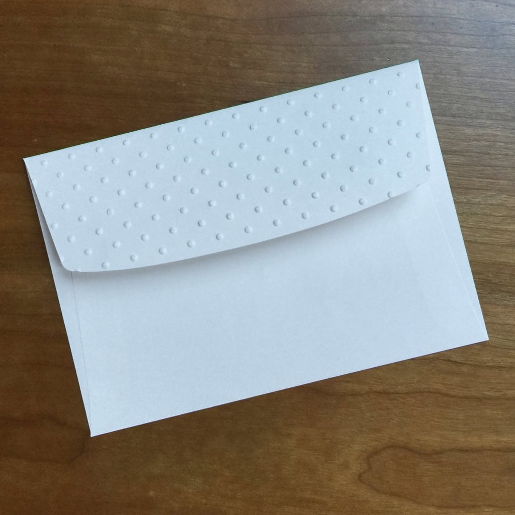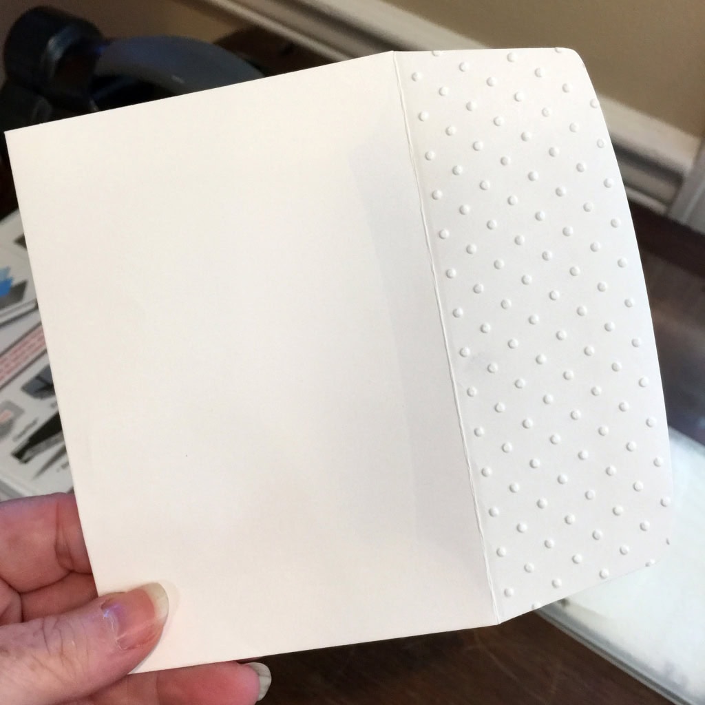 I felt the envelopes needed a little something, and decorating the flap is very trendy right now, so that’s what I did. I used the same embossing folder as above.