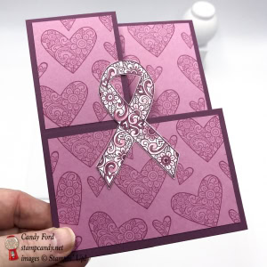 Today’s project is a double Z-fold card made using the Ribbon of Courage Bundle (Ribbon of Courage stamp set and Support Ribbon Framelits dies) for the ICS Blog Hop. The theme for this month’s hop is Colors of Courage. We’ve made projects to inspire those wanting to send cards or projects to friends/family in cancer treatment.
