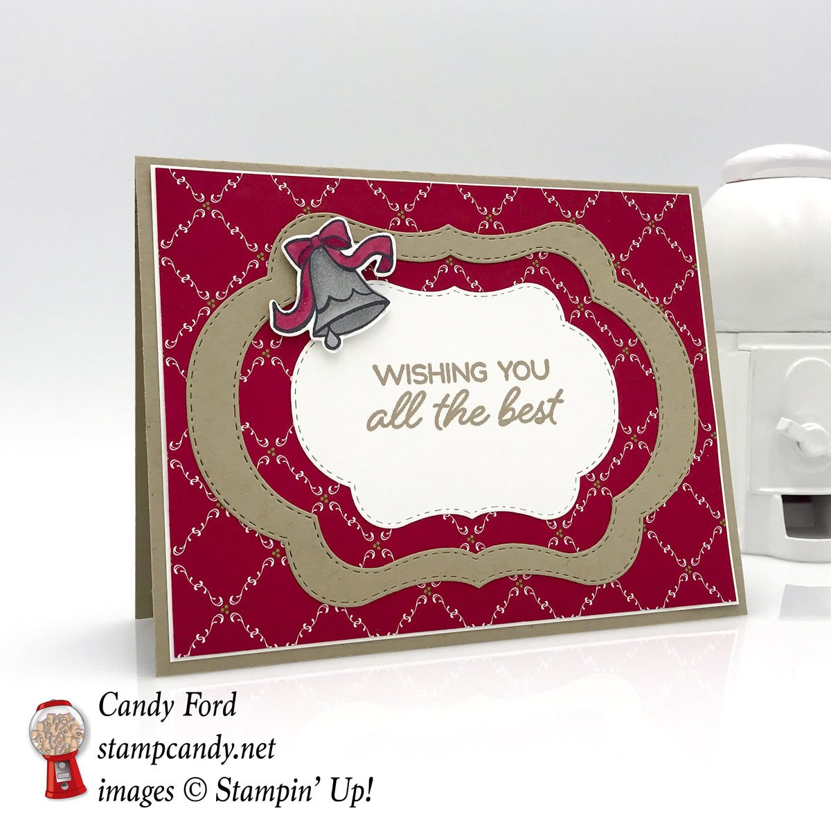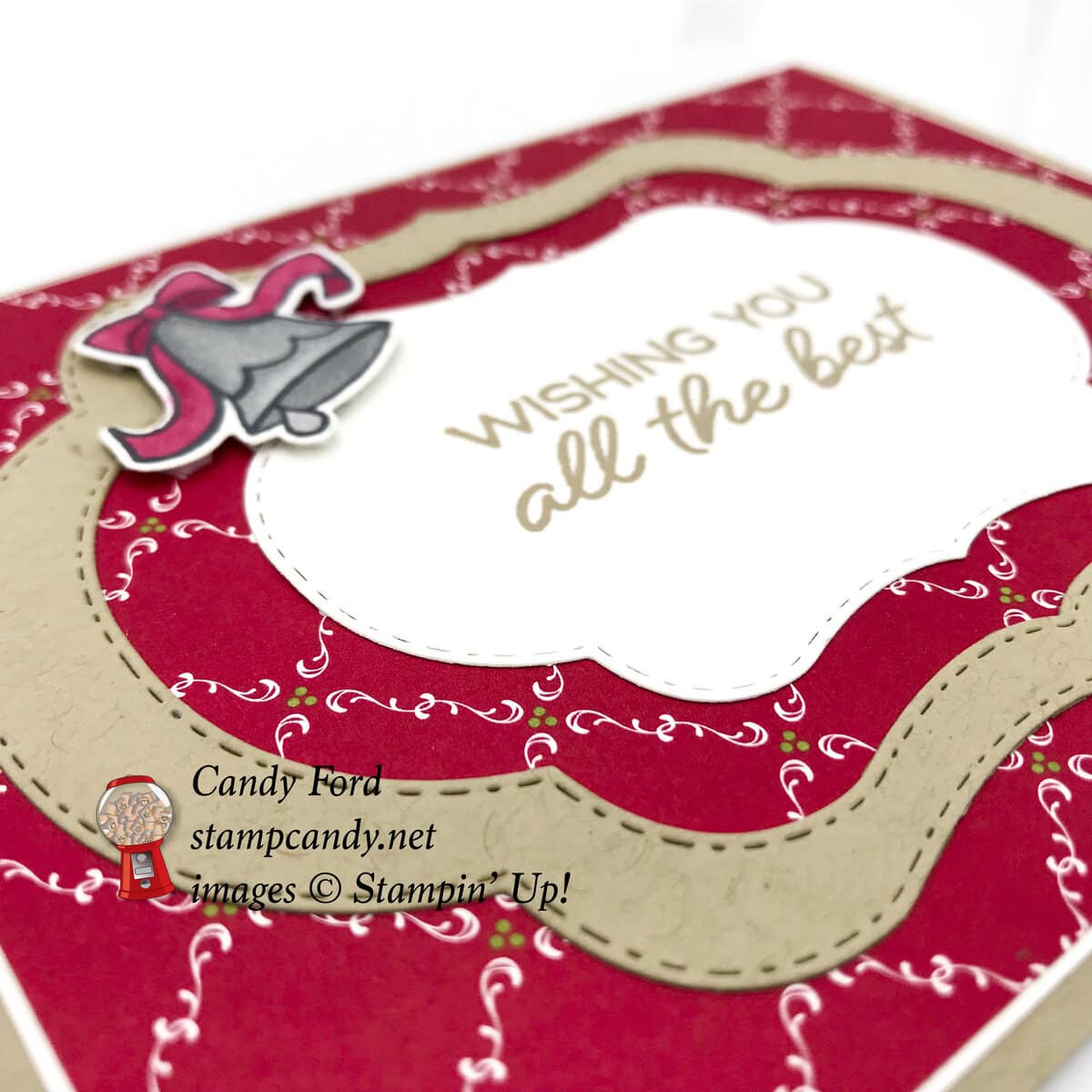 The Blended Seasons bundle (Blended Seasons stamp set and Stitched Seasons Framelits Dies) really does work all year, and for multiple occasions. I used it to make today’s card, meant for a wedding, but it could also be used to wish someone well when they’re moving away, retiring, or beginning any new adventure. The background paper is from the Under the Mistletoe Designer Series Paper, which is meant for Christmas, but can obviously be used for other things.